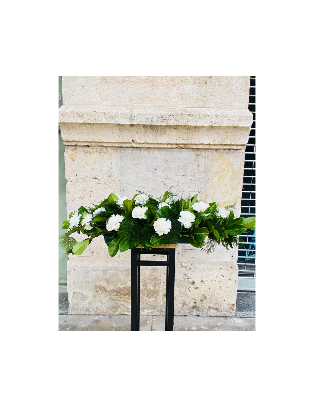 Diseño Horizontal: Su forma alargada y baja está específicamente pensada para encajar perfectamente sobre lápidas o nichos de mayores dimensiones, ofreciendo una presencia elegante y completa.
